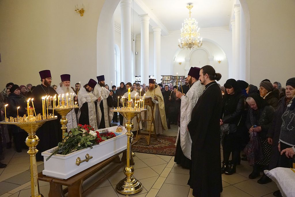 После литургии благочинный Вольского округа протоиерей Илия Кузнецов в сослужении Вольского духовенства совершил чин отпевания. Многочисленные прихожане г.Вольска и с.Черкасское собрались в этот день в Троицком соборе, чтобы помолиться об упокоении новопреставленной матушки Елены Лошкаревой и проводить ее в последний путь.