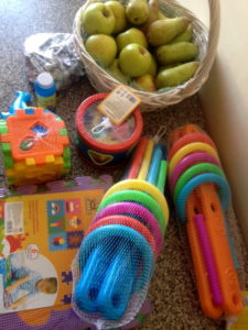 Малышам были подарены фрукты и развивающие игры для детей. Фрукты и игры социальной службой благочиния приобретены на добровольное пожертвование прихожан.