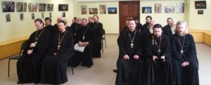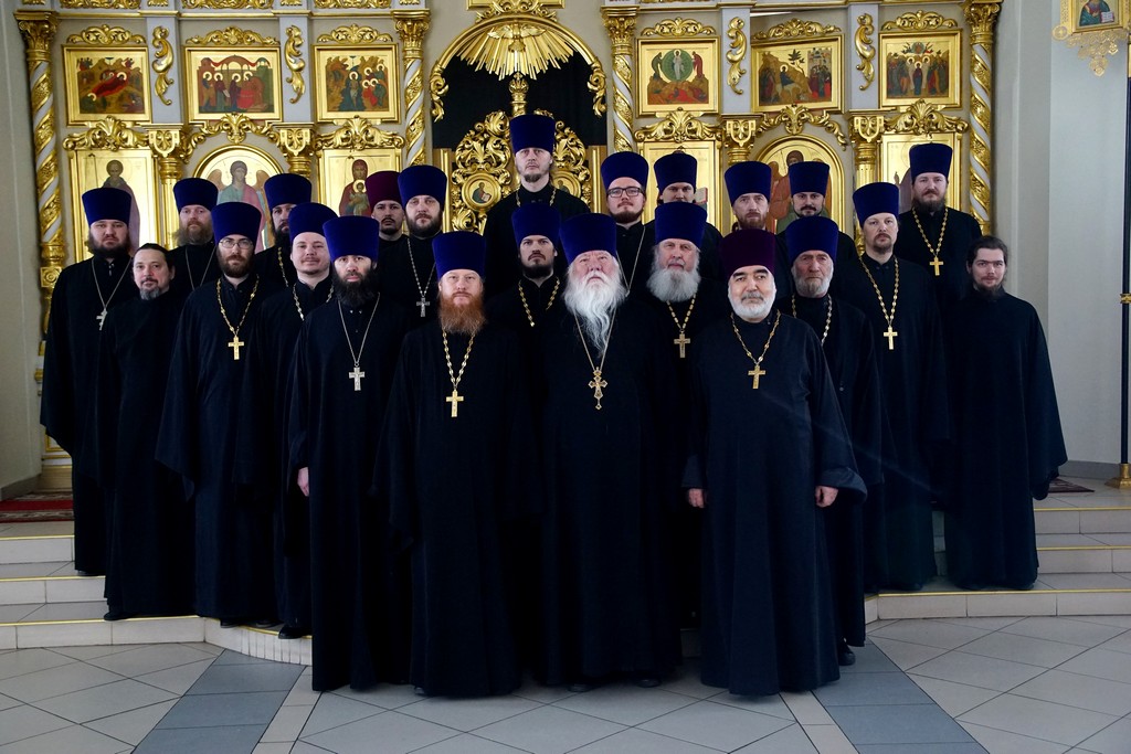 После богослужения в конференц-зале собора протоиерей Илия Кузнецов провел собрание духовенства благочиний, на котором был рассмотрен ряд вопросов по итогам заседания Епархиального совета от 27 марта 2019 г. До всех присутствующих были доведены решения, принятые Священным Синодом 28 декабря 2018 года и 26 февраля 2019 года, а также информация о принесении чудотворной иконы Божией Матери Курская-Коренная из пределов Русской Православной Церкви Заграницей в Саратовскую епархию. Рассматривались вопросы, связанные с практикой совершения Литургии Преждеосвященных Даров в вечерне время, подготовкой приписных приходов к праздничным богослужениям в период Великого Поста и Пасхи и прочие вопросы богослужебной и приходской жизни благочиний.