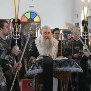 Его Высокопреосвященству сослужили благочинный Вольского округа протоиерей Илия Кузнецов, настоятель храма протоиерей Алексий Земцов, протоиерей Павел Усов, иерей Роман Московцев, протодиакон Олег Дроздов, диакон Александр Аренков.
