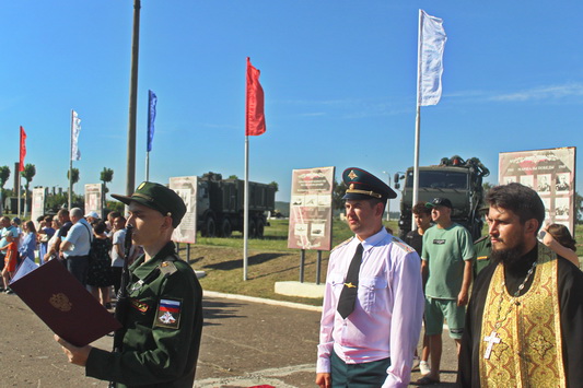 17 июля, иерей Константин Матвеев настоятель храма святителя и чудотворца Николая принял участие в мероприятии, посвящённому принятию присяги молодым пополнением 1 мобильной бригады РХБ защиты. В своём напутственном слове о.Константин сказал, что если стараться жить по заповедям Божьим, жить по совести, любить ближних, то любые обстоятельства жизни можно преодолеть. Об этом говорит и апостол Павел в своём послании к Римлянам: «Любящим Бога, призванным по Его изволению, всё содействует ко благу».