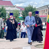 Благочинный Вольского округа протоиерей Алексий Земцов и клирик Вольского Владимирского женского монастыря протоиерей Георгий Проценко вместе с главой Вольского муниципального района Андреем Сафоновым, депутатами, руководителями общественных и партийных организаций, юнармейцами и жителями города Вольска приняли участие в митинге.