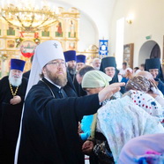 Архипастырь поздравил с престольным праздником храма всех собравшихся на молитву и напомнил: «В этот день мы прославляем Царицу Небесную и Ее образ, который мы именуем Владимирской иконой Божией Матери, покровительницей города Москвы, потому что город Владимир тесно связан с Москвой. Киевские митрополиты перенесли кафедру во Владимир, а потом и в Москву. Эта живая связь времен напоминает нам о том, что мы живем в пределах Святой Руси, которую невозможно искусственно разделить – границами и еще какими-то условными ценностями. Самая большая ценность, в которой мы едины, – это православная вера, вера в Господа нашего Иисуса Христа. А Матерь Божия – Покровительница нашего земного Отечества и Ходатаица за весь христианский род перед Своим Пречистым Сыном, к Которому Она имеет особое дерзновение.