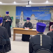 Собрание, возглавленное благочинным Вольского округа, настоятелем Троицкого кафедрального собора протоиереем Алексием Земцовым, собрало настоятелей и священников храмов Вольского района.