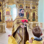 Перед началом Литургии был совершен водосвятный молебен. В завершение богослужения отец Алексий произнёс проповедь на тему воскресного Евангельского чтения.