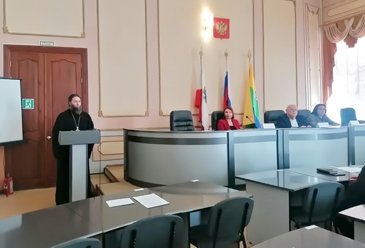 В рамках заседания отец Алексий выступил с докладом на тему «Роль духовно-нравственной деятельности религиозных конфессий в деле сохранения и укрепления традиционных ценностей народов России».